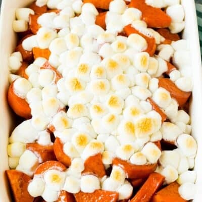 These candied yams are sweet potatoes tossed in brown sugar, butter and spices, then baked until caramelized. Add a sprinkle of marshmallows and you’ve got the perfect holiday side dish with minimal effort!