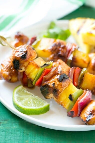 This huli huli chicken is chicken thighs marinated in pineapple juice, soy sauce, brown sugar and spices, then grilled to perfection.