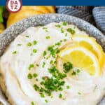 - Garnish with lemon slices and chives if desired, then serve with crackers or chips.