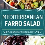 This farro salad is a fresh and colorful blend of grains, vegetables, olives, feta cheese and herbs, all tossed in a homemade dressing. An easy and unusual salad that’s healthy and can be made in advance.
